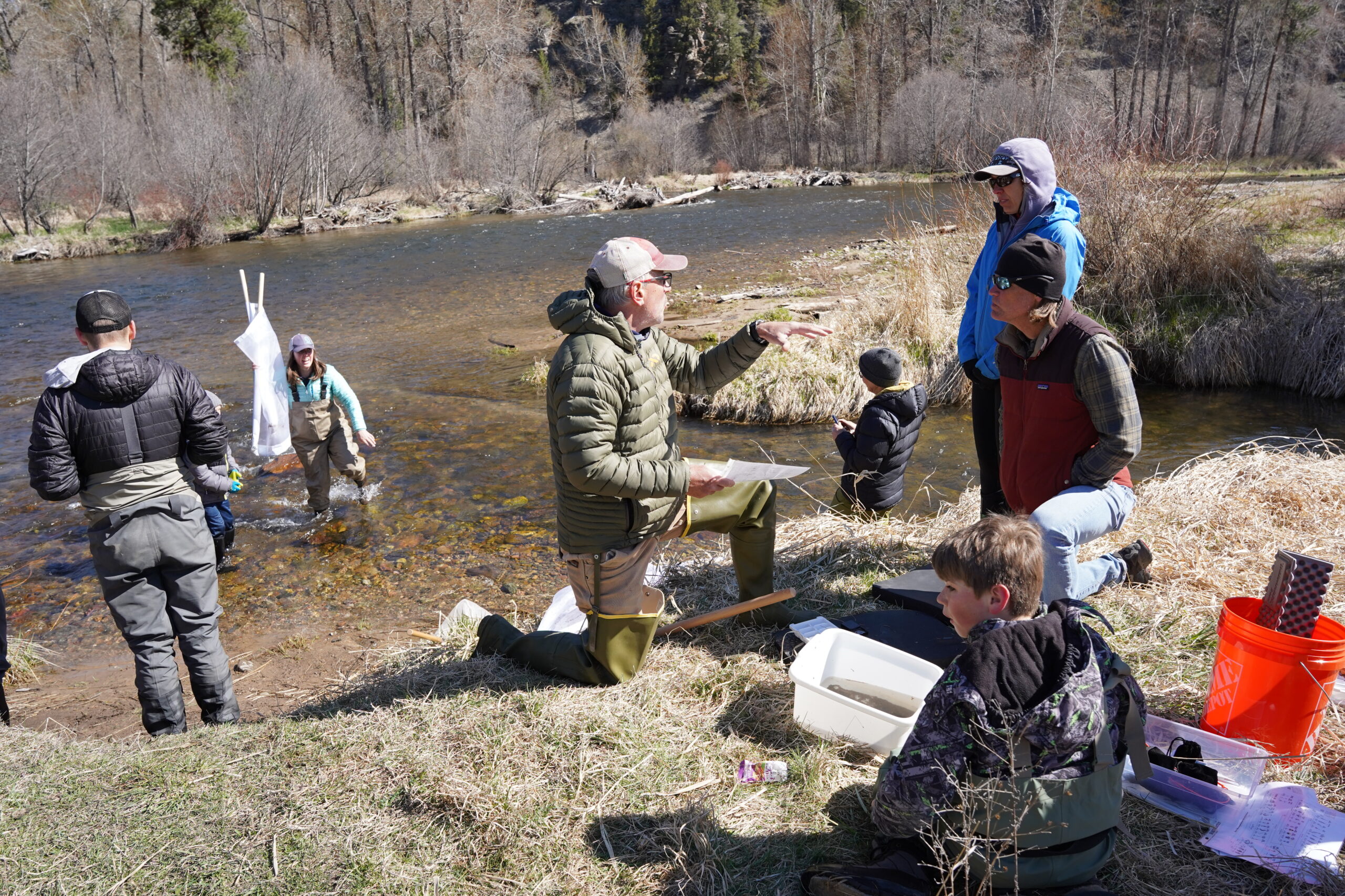 Volunteers explain the importance of river invertebrates on an early morning field trip. Wild Montana members aim to keep Montana wild. Photo by Jason Laughlin 2024.