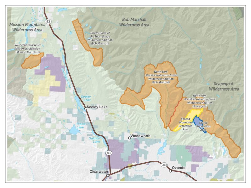 The Blackfoot Clearwater Stewardship Act would add 80,000 acres of public lands to the Bob Marshall Wilderness. Wild Montana members aim to keep Montana wild. Map used with permission from Wild Montana.